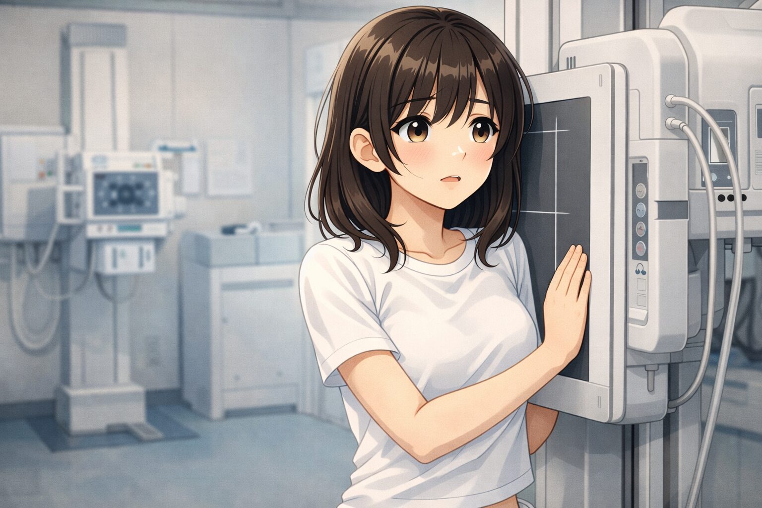 クリップボードで胸元を隠し、先ほどよりは少し堂々とレントゲン室へ向かう。